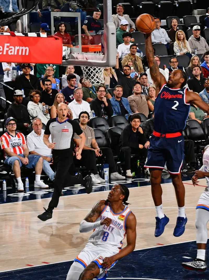 本场比赛,快船队球员科怀-伦纳德出战30分钟,投篮18中8,三分球5中2,罚球4中2,得到20分8篮板3助攻1抢断。