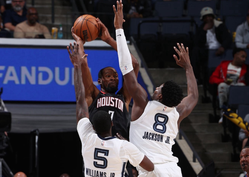 他只适合有人控场,有2-3个投射点拉开空间,给杜兰特提供单打的机会。巧了,火箭一个都匹配不上。球队三分最准的伊森,饱受伤病困扰,复出后又开始打替补,基本和杜兰特错开,伊森和杜兰特一共只打了371分钟,占杜兰特总出场时间的25%;球队有一定控球+投射准星的谢泼德,杜兰特本赛季不下5次夸奖谢泼德,表示该给他足够多的机会,他也会全力支持谢泼德,但谢泼德场均25分钟时间被切割很碎,和杜兰特重叠的时间(602分钟),只占杜兰特出场总时间(1470分钟)的40%。