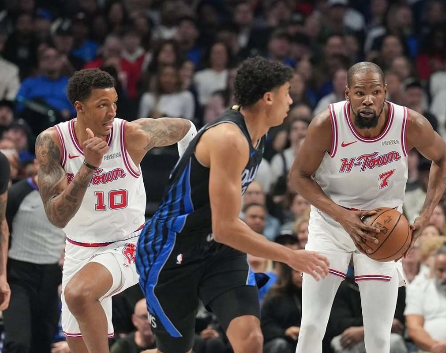 专门查了一下,上赛季火箭同期战绩28胜14负(本赛季半程26胜16负),同比还下降了。一个最直观的对比,送走了杜兰特的太阳,胜场差和得到杜兰特的火箭一样,而且是在杰伦格林基本没打,就相当于狄龙布鲁克斯平替杜兰特得到的结果!半程过后,火箭球队数据真不好,场均117.1分已经降到联盟第12位,进攻效率119.9联盟第5,防守效率113.6联盟第8,净效率值+6.3联盟第四。首先火箭面临的最大问题就是没有控卫,乌度卡也看不上防守端效果不好的谢泼德,于是球队首发,基本上是申京+杜兰特+阿门三人控球。